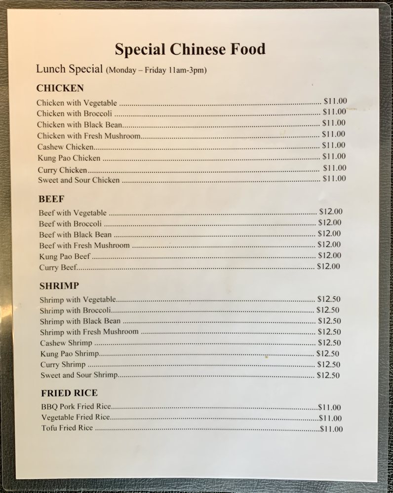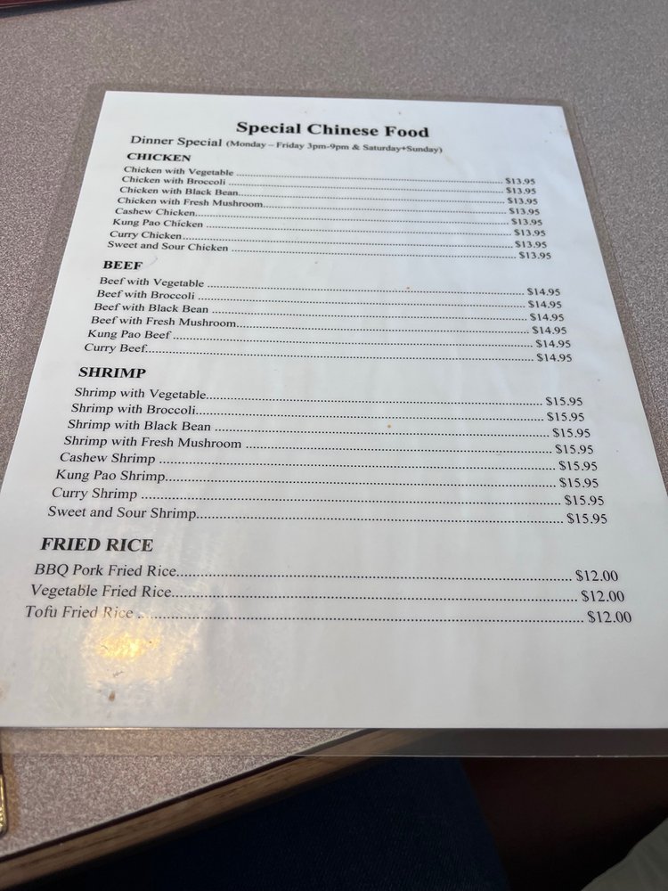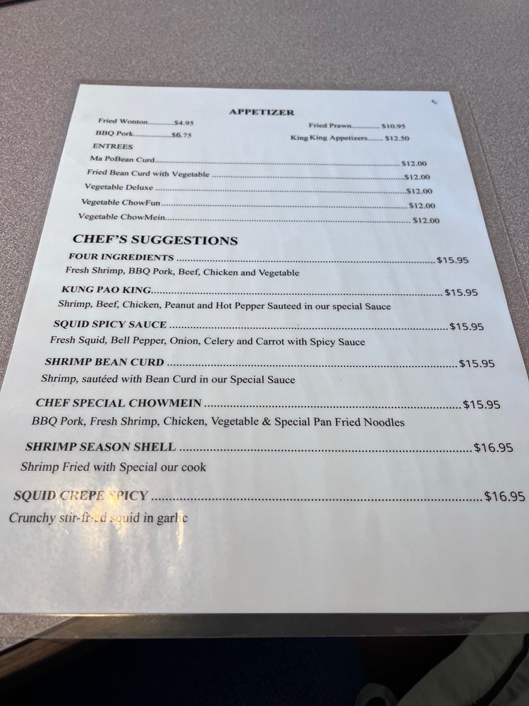 BBQ pork, fresh shrimp, chicken, vegetable, and special pan-fried noodles.
